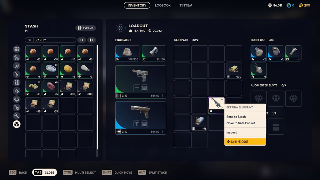 The system works through consumption. Find a blueprint, extract it to Speranza, then choose Learn and Consume to unlock the recipe permanently. You can also sell duplicates for 5,000 coins each. This creates a simple loop: raid for blueprints, learn what you need, and sell duplicates for currency.