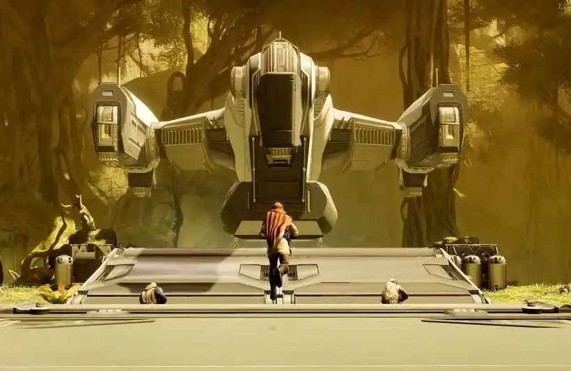 Now, the ship will activate its NLS drive to go faster, so you'll need to make a jump to the next platform by standing on the furthest left, as the speed of the NLS drive will push you to the right. Once you land, you'll want to head left and destroy the blue fuse inside the room.