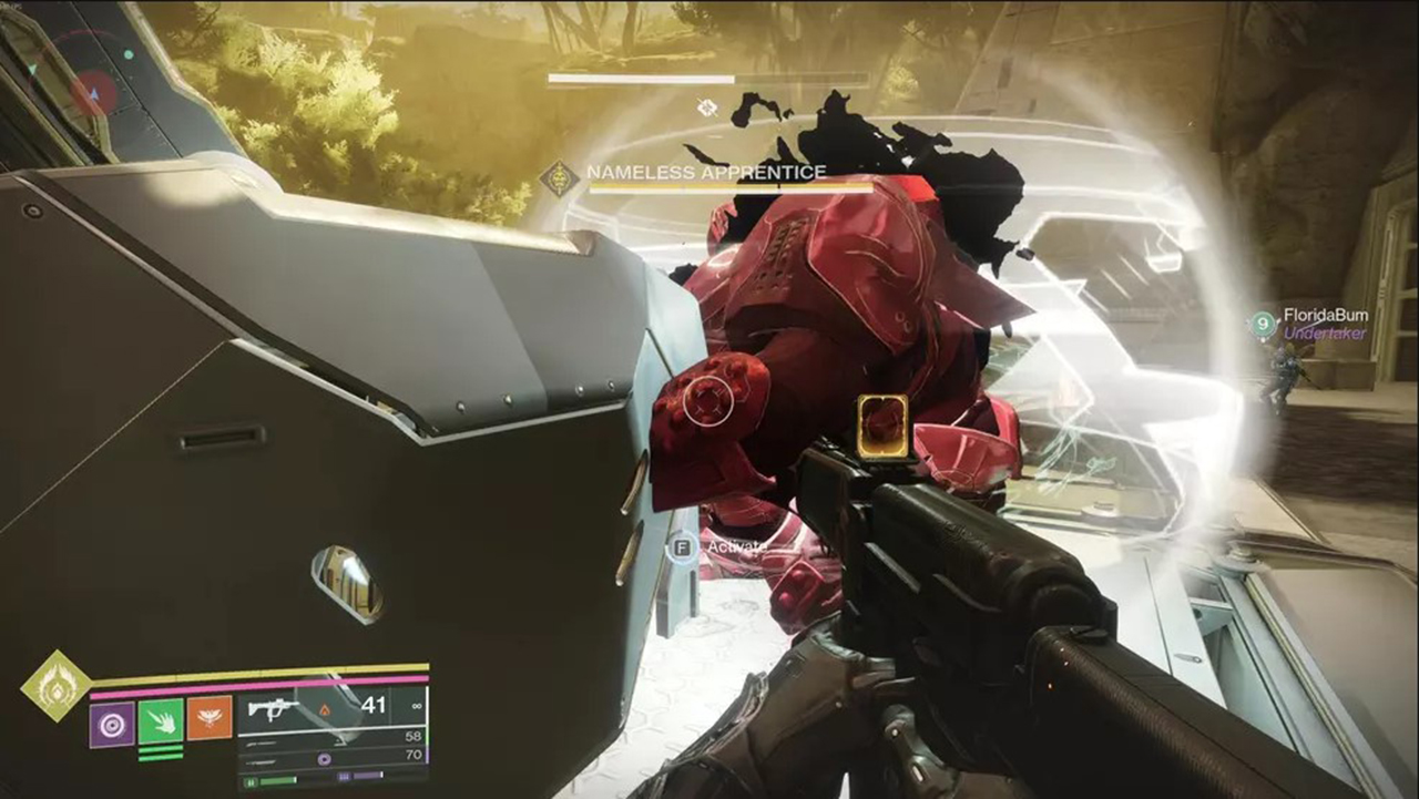 - Enter the shielded rooms that open when you kill a Nameless Apprentice to find a Sparrow that's far faster than yours, and has guns.