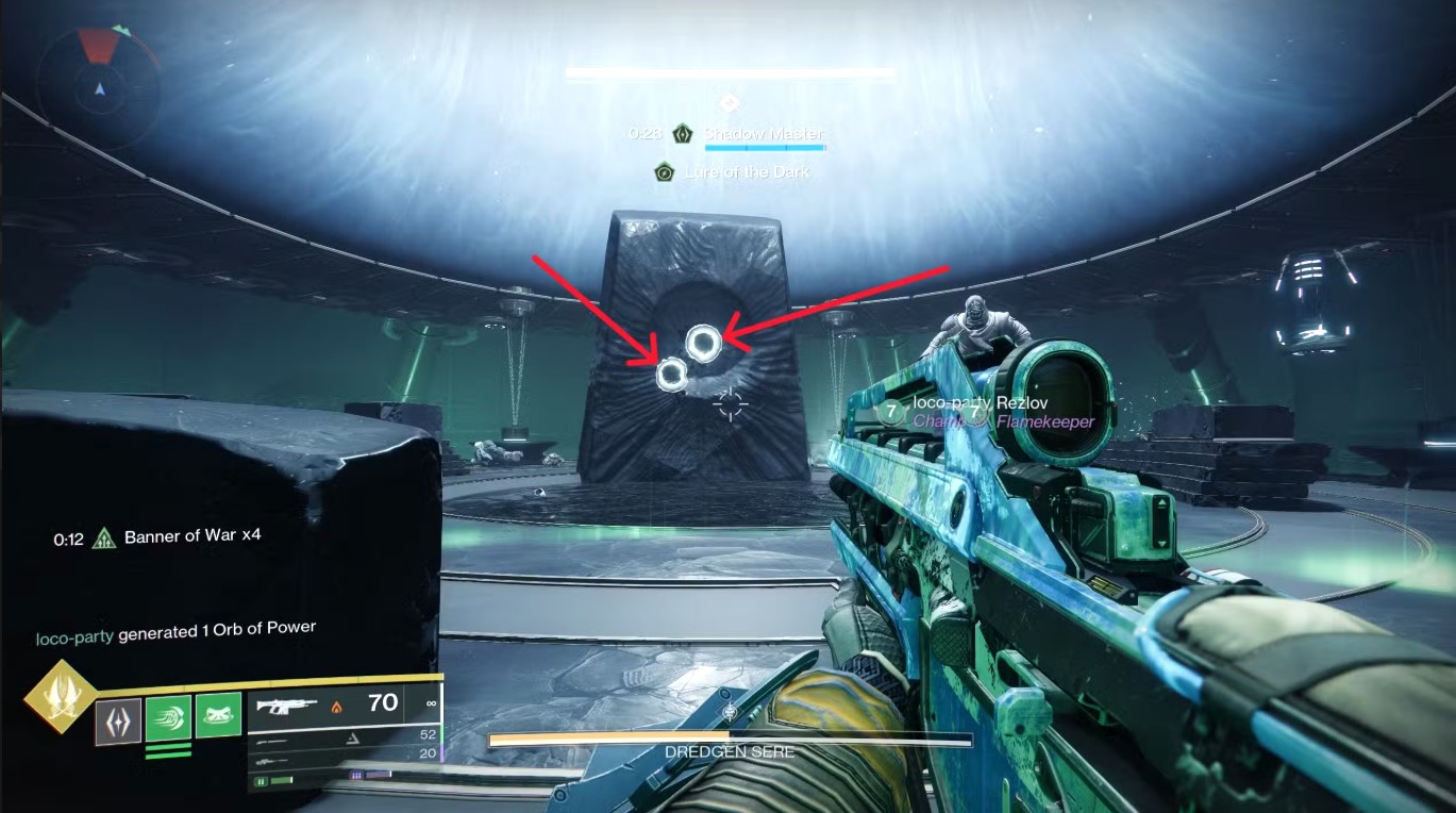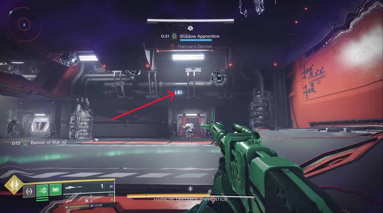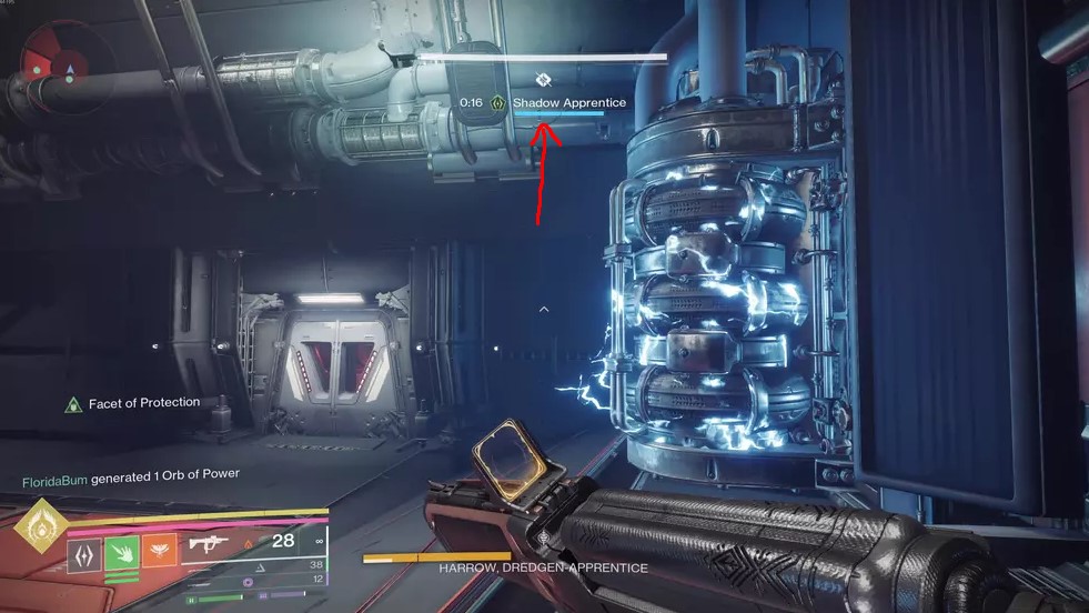 - There are three rooms off the hallways around the main arena. With the Shadow Apprentice buff active, you'll need to use the special grenade ability to hit three Darkness panels in each room. Check for the green lights above the door to know if you've got them all.