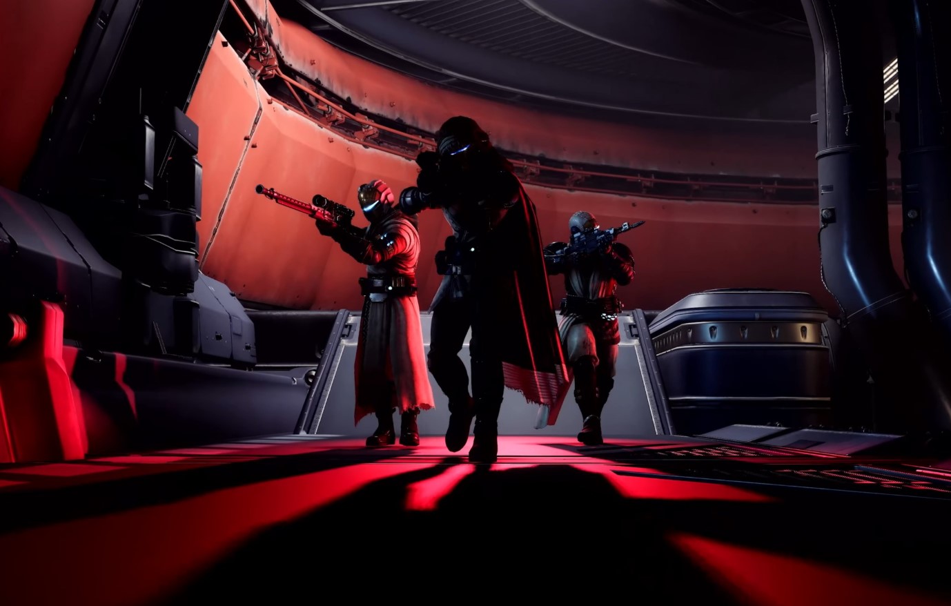 With Harrow's defeat, head to the center of the room to find a lever that you can activate. This will open a bay door for you to stand on, where you'll exit lightspeed and be able to jump to the ship that's arrived on the left. Jump on board, and follow the path left to find two red lights with switches that, once activated, allow you to enter the ship.